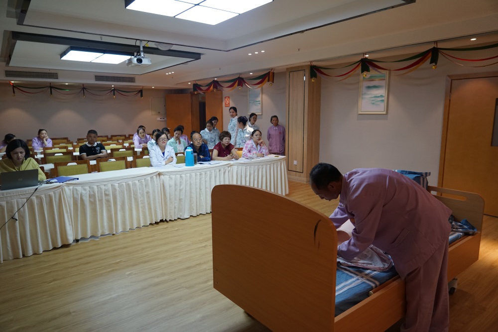 為了慶祝5.12國(guó)際護(hù)士節(jié),為繼承和弘揚(yáng)南丁格爾救死扶傷的人道主義精神和愛(ài)崗敬業(yè),無(wú)私奉獻(xiàn)的職業(yè)風(fēng)范,進(jìn)一步提高養(yǎng)護(hù)中心護(hù)士、生活助理的護(hù)理技術(shù)操作水平和護(hù)理人員基本理論、基本知識(shí)、基本技能,激發(fā)廣大護(hù)理工作者立足崗位、鉆研業(yè)務(wù)的工作熱情和創(chuàng)新活力。鶴鳴山老年養(yǎng)護(hù)中心護(hù)理部在院領(lǐng)導(dǎo)及各職能部門(mén)的支持和協(xié)助下,精心組織,周密部署,于2019年5月10日開(kāi)展了慶祝5.12國(guó)際護(hù)士節(jié)暨護(hù)理技能比賽活動(dòng)。