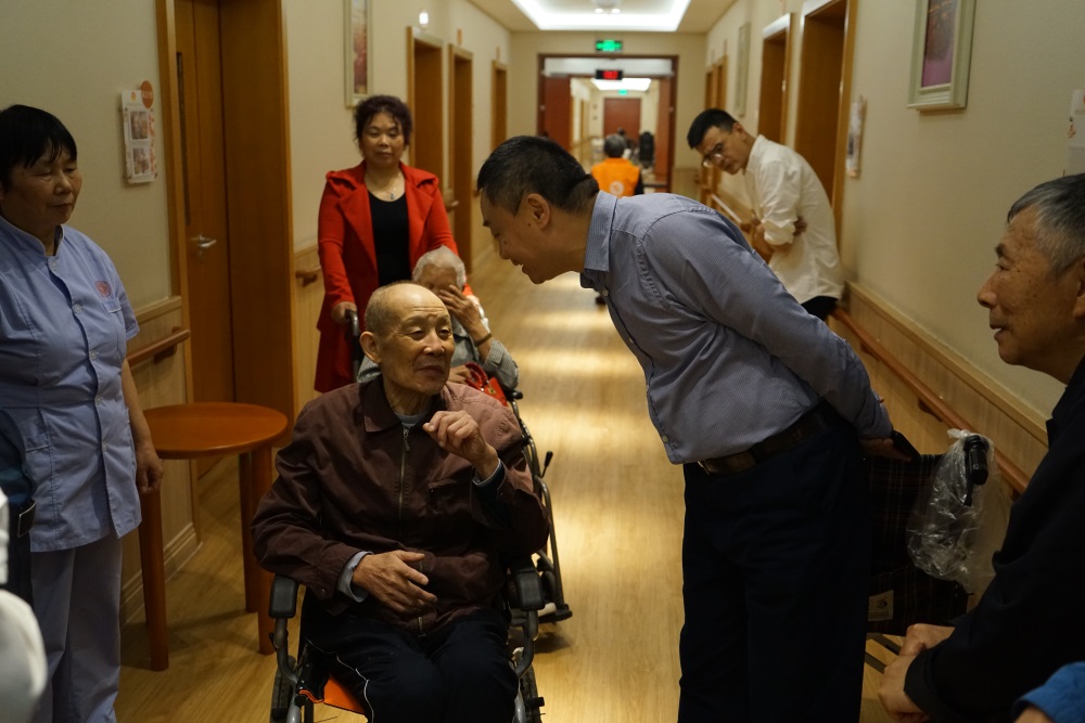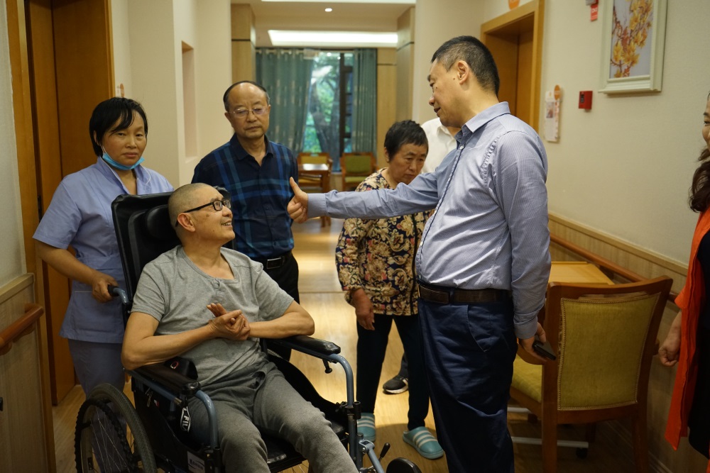 養(yǎng)護(hù)中心入住的長(zhǎng)者對(duì)著林局長(zhǎng)說(shuō):“我來(lái)這里半年了,這里的護(hù)理人員24小時(shí)隨呼隨到,工作任勞任怨,鶴鳴山老年養(yǎng)護(hù)中心真的很好”