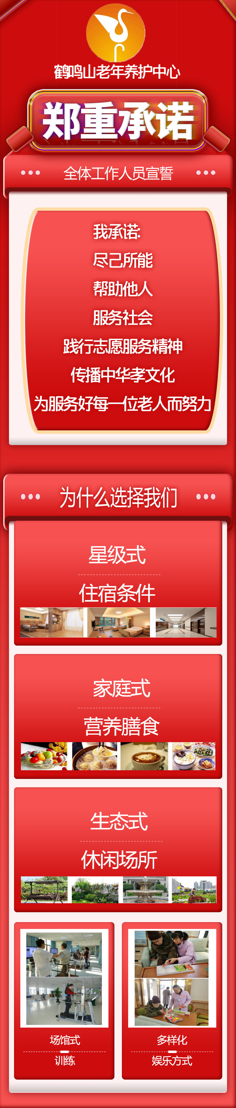 為發(fā)揚(yáng)中華民族尊老的傳統(tǒng)美德,鶴鳴山老年養(yǎng)護(hù)中心各部門都會組織每日早會宣誓,讓工作人員用心與老人交流,給予老人關(guān)懷和呵護(hù)。正所謂“老吾老以及人之老”。每日短暫而意義非凡的時刻,喚醒了我們心底的那份感動。帶著所有的耐心,越過所有的坎坷。接下來一起用心聆聽鶴鳴山老年養(yǎng)護(hù)中心的誓言吧!